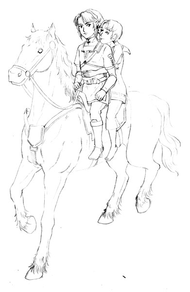 Finished pencil drawing for coloring, but I still had to change Link's expression. |